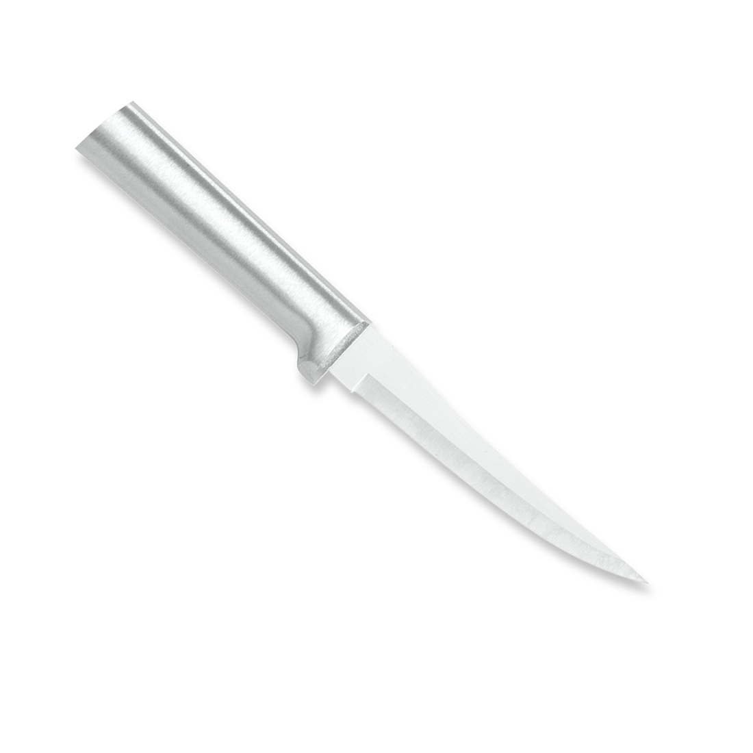 Super parer knife with silver brushed aluminium handle. Blade size 4 3/8" & 8 3/8" overall. Large, comfortable handle and rugged blade allows for a wide range of cutting tasks.